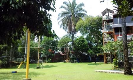 Konsep tempat ini memang di tujukan sebagai lokasi wisata outbound sederhana namun lengkap dan bisa menciptakan keseruan sambil belajar. Nah buat para wisatawan dari luar kota jakarta, ada juga penginapan yang di sediakan dan tidak jauh dari lokasi outbound jika ingin meninap atau bermain lebih malam di tempat ini.
