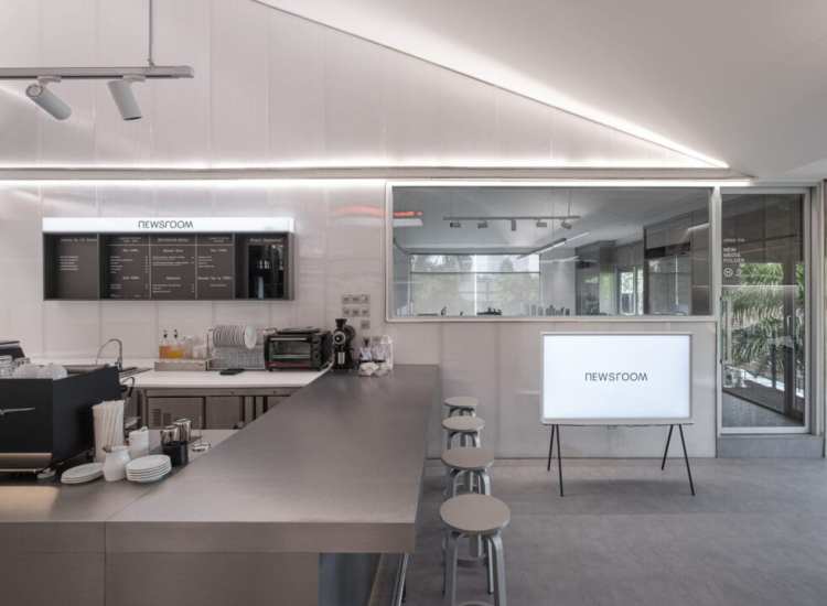 The Newsroom adalah salah satu cafe kekinian yang bisa dibilang baru di daerah Jakarta. Cafe ini mengusung konsep minimalis modern yang didominasi dengan warna putih. Tempat ini memiliki area indoor dan outdoor dengan fasilitas AC dan berkonsep gabungan ruang kerja.