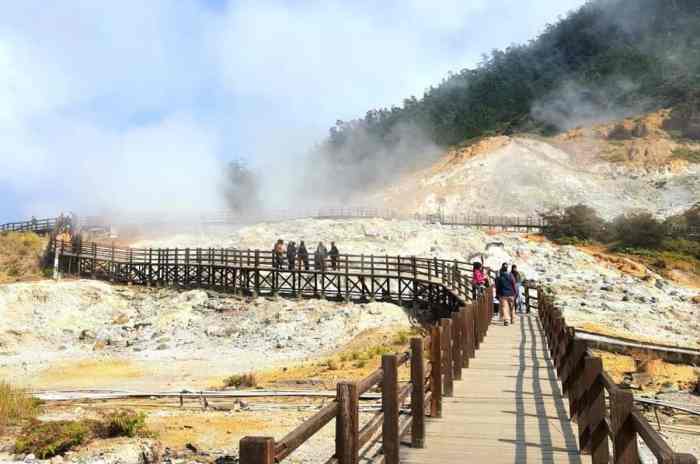Kalian bisa berjalan di jalur pejalan kaki mengitari kawah sambil mengabadikan momen dengan latar asap belerang. Tak lengkap rasanya tanpa mencoba telur rebus kawah yang terkenal di kalangan wisatawan.