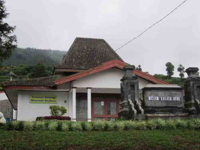 Museum Kailasa menyimpan artefak sejarah dan budaya masyarakat Dieng, mulai dari arca, alat pertanian, hingga dokumentasi budaya potong rambut gimbal. Selain itu, museum ini menampilkan berbagai koleksi yang merekam perjalanan tradisi khas dataran tinggi tersebut.