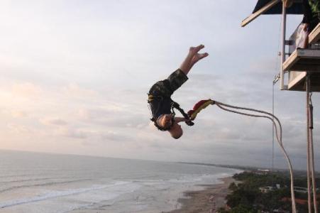Jika menyukai kegiatan yang memacu adrenalin selain berselancar maka cobalah kegiatan bungee jumping. Hanya saja olahraga ini cocok bagi yang memiliki jiwa petualang dan tidak mempunyai riwayat penyakit jantung.