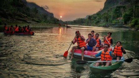 Berlibur disini akan membuat pengunjung mendapat pengalaman liburan yang tak terlupakan. Melakukan outbound di sini merupakan suatu hal yang berbeda, karena para pengunjung atau peserta outbound akan melakukan cave tubing atau susur goa dengan ban karet. Para peserta akan berbaring di atas ban karet sambil menikmati pemandangan di dalam gua dan hanyut mengikuti arus sungai di bawah tanah yang dapat dilakukan sendiri maupun berkelompok.